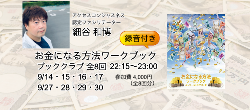 アクセスコンシャスネスの創始者ギャリー・ダグラスの著作『お金になる方法ワークブック』のブッククラブです。